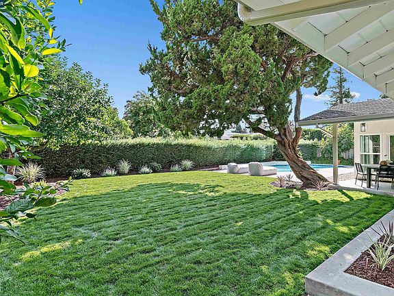Fully renovated 4BD/2.5BA single story on 0.25-acre lot with designer finishes throughout. Living room with vaulted ceiling, gas fireplace, and poolside view opens seamlessly to the expansive new kitchen. The kitchen features porcelain counters, natural white oak cabinetry, a large island with seating, new stainless appliances, and dining nook with courtyard view. Family room includes a gas fireplace, with custom tile, and slider to backyard. Luxurious primary suite with spa-inspired bath. Oak hardwood floors, indoor laundry with half bath, modern entry, and gated front courtyard. Walk/bike to Northgate schools, swim clubs and shopping.