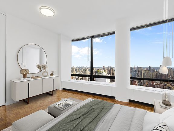 The apartment is approximately 2,215 sq ft. The windows in the primary suite, living room, and dining room offer full, open West views of Central Park. The remainder of the apartment faces South with open Midtown skyline views. The apartment features three bedrooms, a home office area, and three full bathrooms.