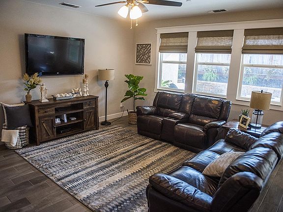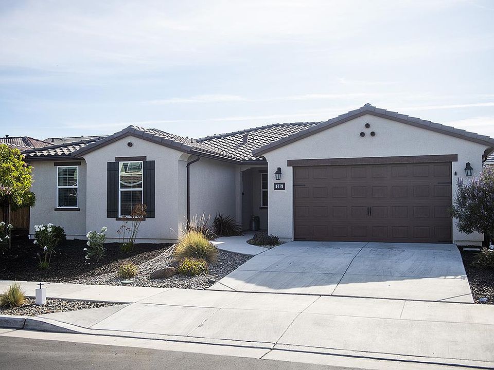 265 El Toro Court in Hollister is a single story, four-bedroom, two-bathroom home located in a newer construction neighborhood close to Highway 25. The home is only three years new with custom tile flooring, granite counter-tops in the kitchen, pantry, stainless steel appliances, breakfast bar, island, and kitchen nook. Master bathroom has large tub, shower stall, and walk-in closet. Designer color scheme with farmhouse style. Additional amenities: tankless water heater, dual pane windows, framed mirrors, custom entryway bench for easy organization, indoor laundry room, hallway cabinets, air conditioning, five-inch baseboards, and high ceilings. No neighbor directly behind you - looking into your yard! No HOA. The front yard is low maintenance and drought resistant plants, and the backyard has a covered patio, gas fire-pit, vegetable garden, and grass. Playground within walking distance.