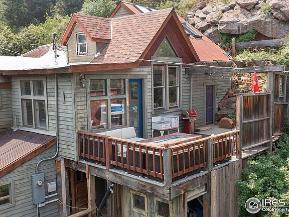 A One-of-a-Kind Mountain Retreat in Eldorado Springs. Searching for a home that embodies privacy, serenity, and character? Look no further! Nestled on a picturesque hillside in Eldorado Springs, this unique residence offers an unparalleled connection to nature, accessible only by foot for the ultimate sense of seclusion. Designed for the true Colorado outdoor enthusiast, this home backs directly to Eldorado Canyon State Park, offering world-class hiking and rock climbing right in your backyard. Just across the street, the historic Eldorado Springs Pool provides a refreshing retreat. Over the years, this home has been thoughtfully and creatively remodeled, blending rustic charm with modern touches. Multiple decks and outdoor spaces invite you to take in the breathtaking views and enjoy the natural beauty surrounding you. One special perk-pure Eldorado spring water is piped directly into the home! The upper level is dedicated to a stunning primary suite, featuring a cathedral ceiling with skylights, a private patio, and a luxurious soaking tub. The main level is warm and inviting, with a cozy living room that opens to the outdoors, a newer wood-burning stove, a dining room with access to a spacious deck, and a kitchen complete with a new tile floor, backsplash, moveable dishwasher, refrigerator, electric range/oven, and pantry. A 3/4 bath completes this level. Downstairs, you'll find an office area, another 3/4 bath, and two additional bedrooms. One bedroom boasts a natural rock wall and a private patio, while unique architectural elements such as a rock outcropping in the hallway and three charming church doors add to the home's distinctive character. With an effective year built of 1990, this home is a rare gem. Looking for additional space or a rental opportunity? The neighboring home at 269 Eldorado Springs Drive MLS#1028063 is also available for purchase. Don't miss this incredible opportunity to own a truly special piece of Colorado!