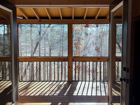 Immaculate and cozy log-sided cabin with a peaceful, pastoral view. Beautiful wood interior, high-end LG kitchen appliances, and easy access. French doors open to your private screened-in porch. Move-in ready for year-round living or vacation rental. Spacious outbuilding with full 100 amp power, heat, and A/C. Whole house Generac generator. Fenced-in area for dogs.