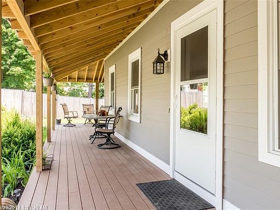 Two updated coastal cottages built in 1900 available in Falmouth Foreside near Town Landing. The back unit, once a schoolhouse, incorporates original elements such as the stone fireplace and wooden beams with fresh pine walls, modern kitchen with industrial feel, and an amazing Trex deck with three-season water views. This unit with 2 bedrooms and 1 1/2 baths is connected by a large Trex deck to the front unit that also offers 2 bedrooms (one currently used as an office) and 1 1/2 baths. Light pours into the dining room and modern kitchen from several windows and a large skylight in the vaulted ceiling. The 2014 Jotul wood stove and original stone chimney convey the cozy summer retreat feel. The beautifully landscaped space between the homes is fenced and has a large shed and garden area. Washer/dryer in each unit convey. Great in-law or rental opportunity!