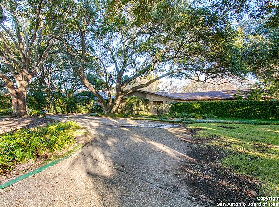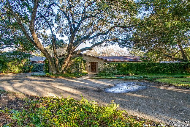 Mid century modern home in the heart of Terrell Hills. This classic 1951 home wraps around a pool with an amazing pool house. Built on .63 acre on Geneseo Road, this house is all one level with a wonderful circular drive and huge heritage oaks in the front and backyard. The main house has 4 bedrooms and the pool house features a fireplace, bed/bath, bar and sliding doors overlooking the pool. This house needs some work, but is a gem in the rough!