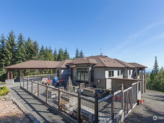 Beautiful home in Lost Mountain on 20 acres. This 3Br 2.5bath, 3400 sq ft home is perfectly perched with views to the North East at Mount Baker, Protection Island, and the Strait. Meticulously cared for home and grounds does not disappoint. Vaulted T&G ceiling, oak floors, open living space. Large L kitchen island with a propane cooktop surrounded by newer appliances. Double sink with views of Mt Baker and Cascade Mtn Range. Primary bedroom on main floor with soaking tub, fireplace, and gorgeous views. Primary Bath has walk in tile shower with a glass brick accent wall and heated floors. Downstairs equipped with 2 Guest bedrooms, a full bathroom, kitchenette, large storage room, utility closet, and a heated workshop with 110/220V outlets.