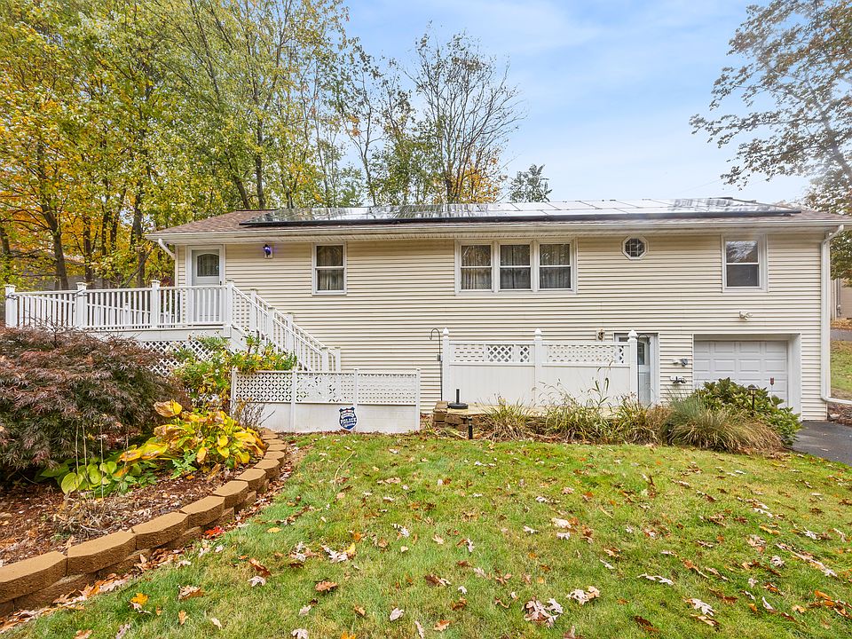 This inviting 2-bedroom, 1 bath ranch offers a bright and open layout featuring a spacious kitchen that flows into a large dining area, perfect for gatherings and everyday living. Step outside onto the expansive newer Trex deck right off the kitchen for additional entertaining space or great for relaxing. The heated lower level offers 1,104 sq ft with incredible potential-easily transform this into additional living space such as bedrooms, office space, or even a possible in-law setup with convenient main-level access and additional separate entrance option. Recent updates include a new roof, solar panels for energy efficiency as well as added attic insulation. Newer furnace, garage doors, sump pump, and easy access for generator hook up are some of the additional upgrades to this home. This conveniently located ranch style home offers easy access to the shoreline, short drive to New Haven/Yale, train from New Haven to NY or Boston, shopping and great restaurants only minutes away from your door. Don't miss this opportunity to make this versatile home your own! Town card has as a 2 bedroom but there is an additional bedroom on the upper main level. Solar agreement is $89.99/month