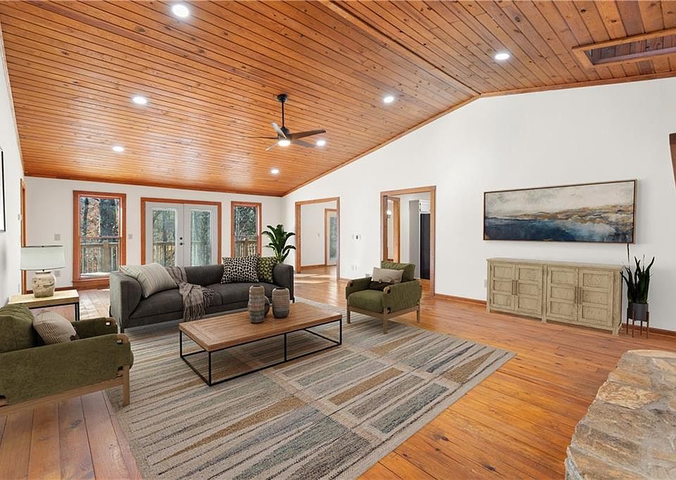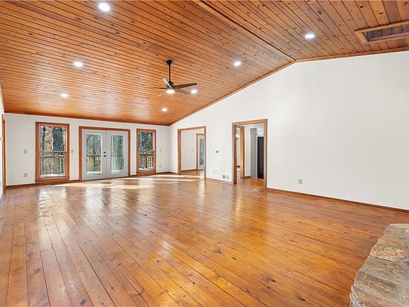 7.4 Acre property with NO HOA! UPDATES/IMPROVEMENTS MADE...and STILL PRICED TO SELL with immediate EQUITY! This fantastic RANCH sits on 7.4 acres with a small creek along the left side and a full basement. The custom built home has only had 1 owner! The Architectural ROOF WAS REPLACED OCT. 2024 with transferrable warranty! 2 new HVAC systems to be installed, or credit given if closing takes place before! The layout is perfect with 3 separated bedrooms and 3 1/2 baths on the main level, and an additional bedroom and bath on the terrace level. Situated on 7.4 private acres, this beautiful ranch home greets you with hard-to-find pine flooring that extends throughout, a beautiful stone, walk-around fireplace that anchors the enormous family room with wood vaulted ceiling, and a warmth that will quickly let you know that this is the one. The artistic side of you will appreciate the design and see how this is truly a masterpiece in the making! The large 3 bedrooms are separated at opposite corners, offering a sense of privacy that few other homes do. Windows and doors extend completely across the back, as does the huge deck which overlooks the peaceful wooded acreage. If you like to entertain, you know what a treasure this is. And the oversized dining room, that also opens up to the deck will only make it easier! But don't stop there! Below is a full basement that is partially finished with a fireplace, large living area and another bedroom with full private bath. There is certainly more space that could be finished if you choose. You'll love the full length lower deck too! The lot is gently sloped with a creek that runs along the left side. Take time to walk the trail so you can appreciate the potential! It levels out towards that back where the perfect garden area could be created if cleared out! Don't let this one get away! Being sold AS-IS (Except for 2 HVAC systems to be installed or a credit given at closing).