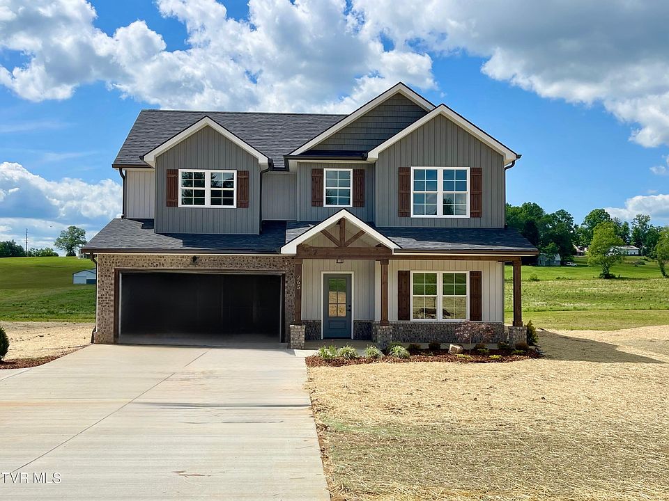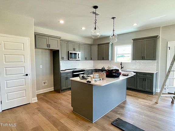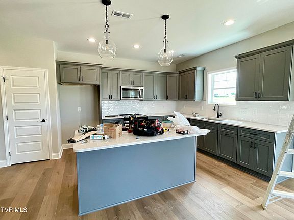 Beautiful family friendly- 4 bedroom, 3 bath home with 2 living spaces conveniently located in the Tusculum area of Greeneville. Upon entering, you are greeted with an inviting 2 story foyer leading you to the living room. The living room offers maintenance free LVP flooring, custom trim fireplace and is open to the dining area and kitchen. The chef of the family will fall in love with the kitchen's open design offering plenty of cabinetry (soft close door and drawers), quartz countertops, tiled backsplash, stainless appliances and a 6' island. The MAIN LEVEL primary suite showcases tray ceilings, accent wall, dual vanity sinks, custom tile shower and walk in closets with custom shelving. There is an additional bedroom on the main level with a full bathroom right outside. The second level offers a spacious family/den area that is sure to provide your family with the extra living space needed. The 3rd and 4th bedrooms are generously sized and each have large closets. Flooring throughout is maintenance free LVP (NO carpet!). Relax in the evenings on the covered patio overlooking the rolling countryside. Pioneer Crossing is conveniently located in the Tusculum area of Greeneville will all the city amenities but no city taxes! This quality home has a 1 year builder's warranty. Taxes to be assessed. All information herein deemed reliable but subject to buyers verification.