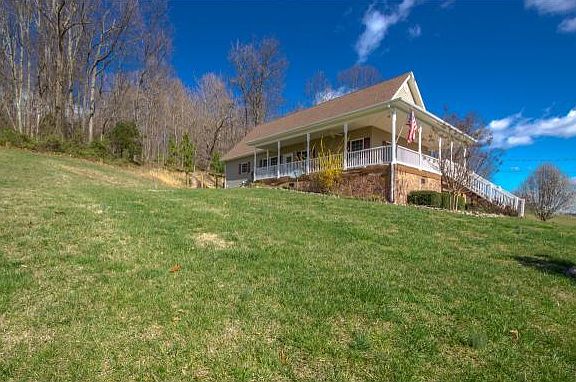 Beautiful home sitting on 7.86 acres with spectacular mountain views! You'll be pleased with the 2-sided covered porch, and back deck. Enter this lovely home and you'll be welcomed with beautiful wood floors on the 1st level. Lots of natural light in LR with fp. Dining area off of kitchen. Gorgeous kitchen with beautiful cabinets and counter tops. Master bedroom on main level with walk-in closet. Master bath features double sinks, jetted tub and stand-up shower. Also on the main level could either be a small office, or another bedroom with it's own private 1/2 bath. Upstairs features 2 large bedrooms with a Jack-n-Jill bath. Full-unfinished basement too!
