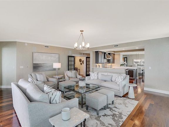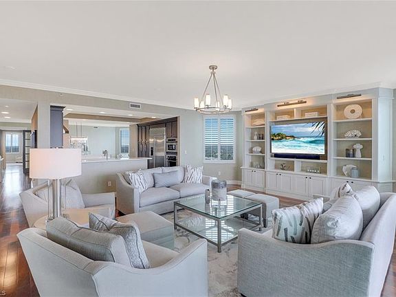 STUNNING! This gorgeous, updated, one of a kind home is being offered furnished with beautiful decorator furnishings. Step out of your private elevator into the elegant living room and be greeted with forever views of Turkey Bay and sunsets over the Gulf. The Master Oasis boasts incredible water views, a spa-like master bath and huge master closet with built-in closet system. The gourmet kitchen features gorgeous quartz countertops, custom cabinets, SS appliances, gas range, Advantium microwave, and a wine cooler. Kick back on the spacious lanai and watch ospreys soar and dolphins play in Turkey Bay. The two guest suites, one with en suite bath, are separated from the master providing ultimate privacy for you and your guests. Membership in the exclusive Floridian Beach Club on Vanderbilt Beach is available. The Grande Geneva features its own pool and spa, barbecue area, 2 parking spaces, private fitness room and concierge service. Included in your HOA dues is access to the 5 Star Resort amenities of The Club at the Dunes, featuring elegant fine dining, an indoor-outdoor restaurant, resort pool, tiki bar, world-class fitness center and staffed tennis facility. And, PET FRIENDLY!
