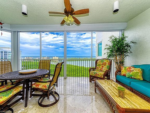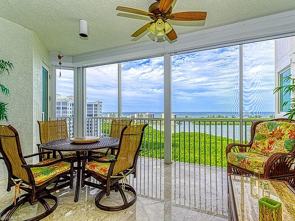 Enjoy postcard perfect views of the Gulf of Mexico and Turkey Bay from this exquisite home in the sky. This home was modified during construction to include both an additional office complete with French doors and a fully appointed wet bar. Additional upgrades include extended overhang granite countertops, solid wood cabinets with additional decorative shelving, top of the line stainless appliances including a gas stove and built in wine cooler, surround sound, crown molding in every room, shadow box detailing, recessed lighting and upgraded lighting, marble bathroom counters, electric hurricane shutters, and the list goes on! Included with the sale of this unit is an optional membership to the private Floridian Beach Club complete with luxury terrace dining, beachside pool and beach chairs, towels and service. Also included is membership to the Dunes Club located inside the gates of the community - recently upgraded with a $10M renovation - offering a tropical waterfall pool and spa, fitness center, tennis center, guest cottages and a very active social calendar. This is an excellent buying opportunity in Coastal North Naples where new construction begins at nearly $2m!