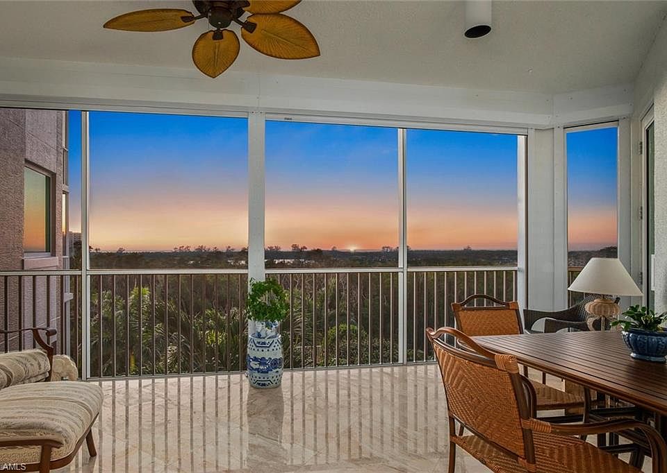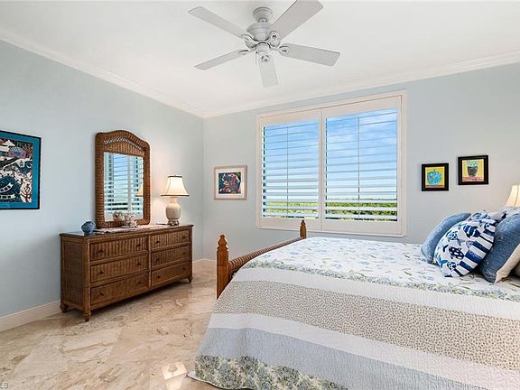 Absolutely Stunning Luxury Tower Residence with Sunset Views of the Gulf. Stroll up in your private elevator in this professionally decorated 3 Bed plus Den, 3 bath unit with many custom upgrades, including crown molding throughout, California closets, custom Den and Built-in Wet bar, electric hurricane shutters on the lanai, custom plantation shutters with professional window treatments, high end Italian marble flooring throughout, chair rail accents in main areas, GE Monogram stainless steel appliances with gas cooktop, and wine cooler. The Grande Geneva high rise tower faces Due West with phenomenal sunset views, and sun all day long at the pool, and views of Old Collier Golf Course. A MUST SEE, highly coveted Floridian Beach Club membership available with private shuttle from your tower residence directly to the beach 7 days a week, every 30 minutes. Like new, barely lived in, never rented, and was built out in 2013. Onsite is the brand new Clubhouse at The Dunes, with fine dining and full bar service, oversized leisure style pool, tiki bar, top of the line wellness center, overflow guest cottages, and an active tennis league with onsite his and hers pros. Pet friendly.
