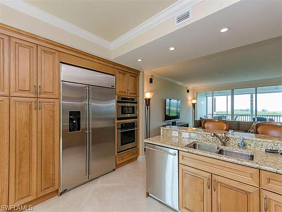 Beautiful three bedroom, three bath condo located in the Grand Geneva building of The Dunes. This Luxury condo features a large open floor plan filled with natural light, upscale stainless appliances, tile throughout living areas, carpet in bedrooms, a custom dry bar, and beautiful sandstone granite counter tops. You will experience breathtaking sunsets overlooking the Gulf of Mexico from the back lanai and master bedroom. The building has a private community pool plus the Plantation Club for all residents. Floridian Club membership for the private beach club available for $25,000. Tennis, Concierge center and gated community will make your stay care free while you soak up all Naples has to offer!!.