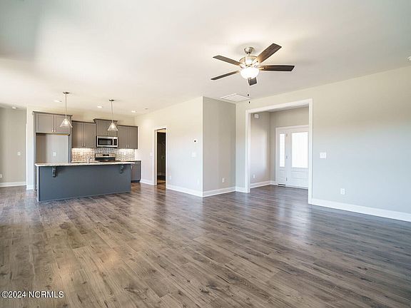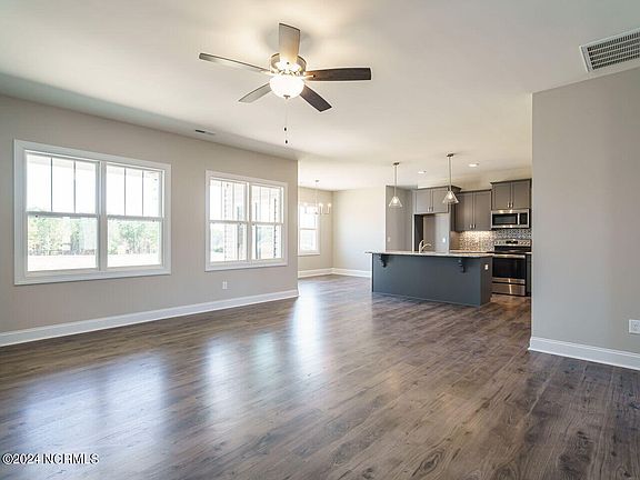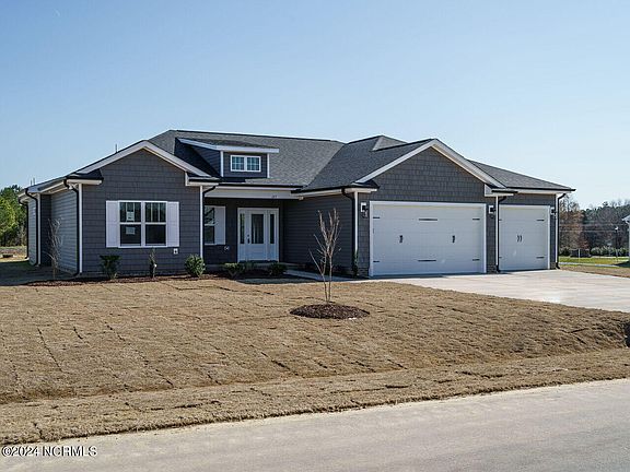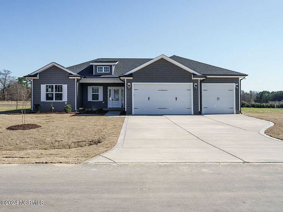 One Story living with a 3 car garage! Amazing plan with 3 bedrooms, 3 full baths & an office/study. Open concept in living/dining/kitchen area.Fireplace with gas logs in the living room. Center island in the kitchen, granite tops, tile backsplash & pantry. Owner's suite features ensuite with a large walkin shower, dual vanity & tile floors. Walk in closets in all 3 bedrooms. Separate laundry room. All baths & laundry/mudroom have tile floors. Covered rearporch & concrete patio. This lovely home has a 3 car garage and is situated on a .65 acre lot. New construction and ready to move in!!