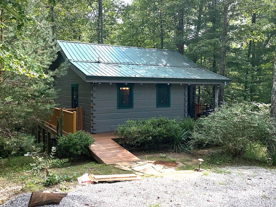 Immaculate, move in ready, cute as a button cabin with 4 stall barn and hay shed. Pasture area fenced. Lots more woods for privacy or clear for pasture. Creek borders boundary on 3 sides. Trail to Spruce Creek Trails right by the property. This cabin has been completely updated. Anderson doors and Anderson wood frame windows. Heat pump, laminate flooring and tile in bathrooms, poured foundation, old barnwood used for kitchen cabinets, vanity and on some of the walls. Special energy saving water heater with away control.Open floor plan on first level with deck and porch. Need to see to believe what good condition this home is in. Keyless entry. There is also a separate septic or holding tank for rv's.
