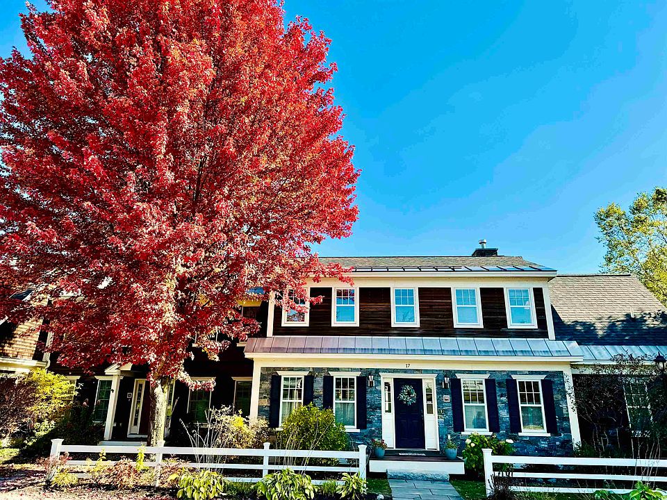 This exceptional four-bedroom, three-and-a-half-bath townhome unit offers stunning views of a tranquil pond, lush gardens, and expansive green spaces adjacent to land preserved by the Stowe Land Trust. Townhouse 17 is ideal for both full-time and weekend residence, with no restrictions for short term renters on length of stay in the Condo documents. The two-car garage is conveniently located across from the main entrance of the residence. It features ample interior space with permanent shelving and storage cubbies, ready for immediate use. The first floor has a primary en-suite bedroom with a full bathroom and an additional half bath on the main floor, along with an upstairs guest suite that has two full bathrooms and extra bedrooms. The unit is tastefully finished with granite countertops in both the kitchen and bathrooms, while the living room boasts a gas fireplace, complemented by hardwood floors, tile, and carpeting throughout. Situated just off the Stowe recreational path, this home is ideal for walking, biking, cross-country skiing, and snowshoeing. It is only minutes away from Stowe Mountain Resort, which offers world-class skiing and a nationally recognized golf course, as well as historic Stowe Village. The condominium comes fully equipped and furnished for immediate enjoyment, with only a few personal items as exceptions.