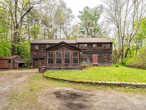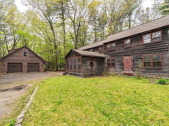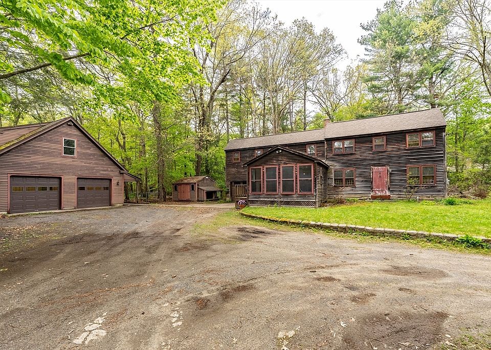 This reproduction saltbox colonial is ready for the new owner to make it shine once again! Nestled on 1.4 wooded acres, it affords a sense of privacy while being just minutes into downtown. You will love the size of the expansive eat-in kitchen, with a fantastic wall of windows to let the outdoors in. Ample counter space, Viking gas (propane) stove and lots of cabinets are a great foundation for your decorating ideas. The kitchen opens into the main level of the house with LR, a first floor bedroom/den/office and full bath. Upstairs, there are 2 more bedrooms, a flex space and small loft. In addition to the 1 car attached garage, there's another detached 2 car garage. This one has it's own propane heat, along with a walk up loft space that just needs some finishing touches to make it a great workshop, craft space or whatever you might dream up! The property also has a couple of sheds for any outdoor equipment.