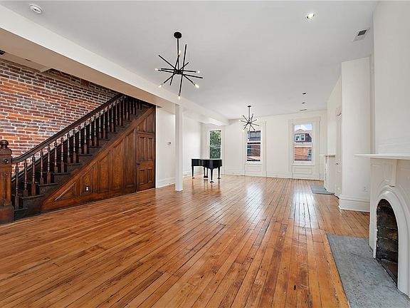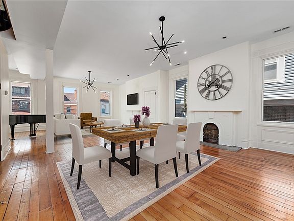 Exceptional historic home in the heart of Lawrenceville! Beautifully updated condo with original characteristics within walking distance to Butler Street and Children's Hospital. This 2 bedroom, 2-1/2 bath condo boasts incredible original millwork and staircase, exposed brick walls, original pine floors, high ceilings, and expansive open living space, all complimented by 5 decorative fireplaces. A true masterpiece of the original craftsmanship! The kitchen is beautifully updated with newer stainless steel appliances, Carrera marble island, new lighting, and a pantry. Expansive side porch to enjoy morning coffee. Additional room w separate entry is perfect for a home office. The primary en suite has an oversized walk-in closet and is flooded with natural light. Designated off-street parking space with plenty of on-street parking on Main Street. This one is a hidden gem in the heart of Lawrenceville!