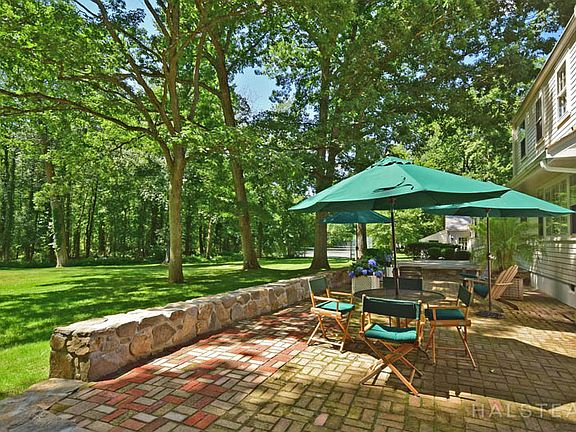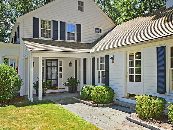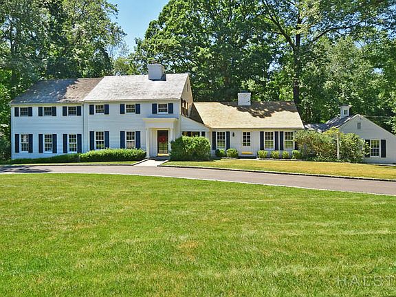 The perfect size, the perfect setting - a home with character, convenience and privacy minutes to town and train. A bright welcoming foyer beckons you to the wonderful living areas all bathed in sunlight. Eat-in kitchen with fireplace adjoins a cozy den with fireplace. The large sunny 25x22 family room has French doors opening to a private, spacious terrace overlooking the grounds and tennis court. Four second floor bedrooms, office/guest space on first floor affords great flexibility. This very special Connecticut colonial has great curb appeal, 4-car garage and a manageable, appealing immaculate interior you will not want to miss!