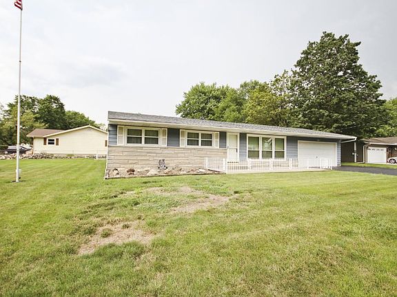 Well Maintained Mt. Zion ranch with extra 1.5 car detached garage/workshop, plus a yard barn. Updates include Roof, furnace, AC, replacement windows. Open concept in main living area. Hardwood under carpets. Large corner lot with fenced in back.