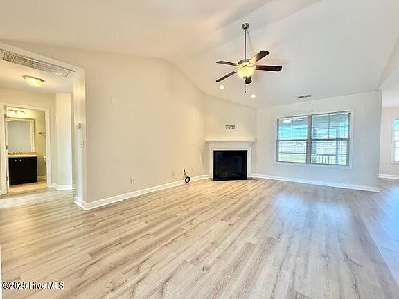 Super well maintained home in an established subdivision with open floorplan. Minutes from schools, shopping and restaurants. Enter to a Foyer which opens to a Great room with Cathedral ceiling, ceiling fan and fireplace. The large eat in kitchen is to the right, and has a backsplash, stainless appliances, pantry and an island for extra counter and cabinet space. The Laundry is in a hallway off the Kitchen. The bedrooms are on the left side of the house, and are spacious. The Master bedroom has a ceiling fan and a huge walk in closet. The Master bathroom has a soaking tub, a double vanity and a separate walk-in shower. This home has a large two car garage with opener, covered front and rear porches and a privacy fenced backyard. Easy commute to all area military bases!