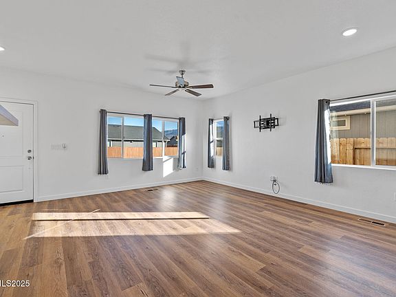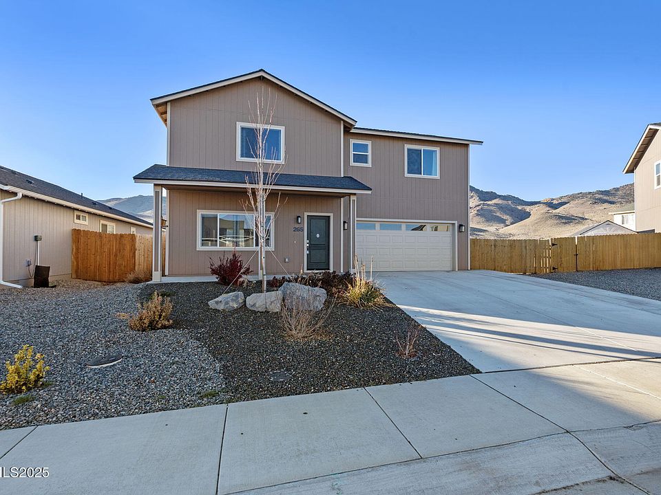 Nestled in the peaceful heart of Dayton, this thoughtfully designed 3-bedroom, 2.5-bath home offers modern comfort, mountain views, and the space to live your way. With 1,640 sq. ft. of open living and plenty of room for all your Nevada adventures, this home blends rural tranquility with easy access to everything you love. Inside, the open layout highlights solid surface counters, stainless steel appliances (some with smart features), and luxury vinyl plank flooring throughout the main living areas, while carpeted bedrooms add a touch of warmth. Central air conditioning keeps the home comfortable year-round. Upstairs, the primary suite features a step-in shower, double sinks, and a generous closet. A dedicated laundry room on the same floor adds convenience, while two additional bedrooms and a full bath provide plenty of space for family or guests. Step through the sliding glass door to the patio and fully fenced backyard, perfect for evening barbecues or quiet relaxation. A dedicated small-dog area ensures your pet has room to play, and gated RV parking offers secure space for your toys or travel gear. Out front, the xeriscaped yard with a drip system keeps maintenance simple and water use low. Wake up to sweeping mountain views, then hit the trails—Dayton offers quick access to hiking, biking, horseback riding, and off-roading. Experience Dayton's recreational lifestyle with the Dayton Valley Golf Club just minutes away, offering championship golf and mountain vistas. Conveniently located near schools, shopping, and restaurants, and only a short drive to Carson City, Reno, and Lake Tahoe, this home combines modern comfort, outdoor adventure, and small-town charm in one inviting package. All this and no HOA!