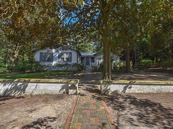Classic 1920s historic cottage that has remained in one family since the late 1920s. Mediterranean architectural style on a single level with an inner brick courtyard & extended private garden & grilling area that blend indoor and outdoor living. Additional bedrooms were added in the 1930s beginning in the front room. Original floor tiles from Charleston, beams created from local timber and original ash & oak hardwood flooring are intact. Four spacious bedrooms, all with en suite baths. The home is situated on a .5 acre corner lot, convenient to downtown with a view of Weymouth. The existing garage was converted to an apartment with an unfinished bath & kitchenette. Space on property for building opportunity that could include a garage. A rare find & a must see.