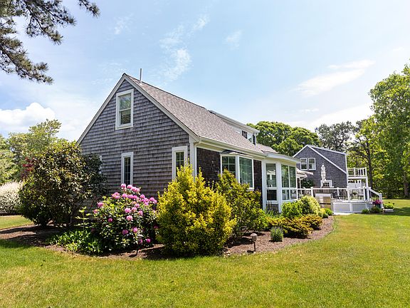 This home has to be one of the most beautiful and well appointed homes in Eastham. We have 4 bedrooms and 4 baths, a kitchen to die for with an island (39x78), professional cooktop, dual ovens, beverage fridge, steam oven, farmers sink, quartz counters, and a coffee bar. We have a larger living/dining room with a vaulted beamed ceiling, skylite, gas fireplace, wide pine floors throughout. The first floor primary suite includes an office, a sunroom, walkin closet, ensuite bath, and a dressing area. Upstairs is another suite with a private bath. The 2 car carriage house has a legal bedroom, full kitchen, and a full bath - everything you need to escape your inevitable company. Full partially finished basement. Gas heat, central AC, paved circular driveway. Large custom rear deck with awning.This wonderfully landscaped 1.16 acres is under a mile to Bay beaches, on a paved public road.This home truly needs to be seen to be appreciated. Dream Here!