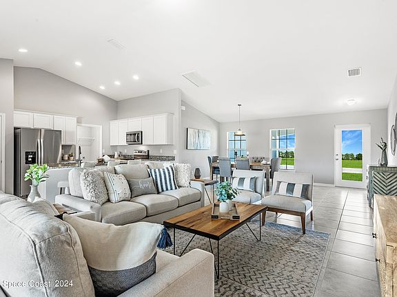 NEW CONSTRUCTION WITH WARRANTY! The St. Augustine features the best of indoor & outdoor spaces with a gracious covered front porch, a large covered lanai, & the spaciousness of an open floor plan. In the main living areas, a vaulted ceiling connects the dining area with double windows, kitchen with a freestanding island & pantry, & Great Room a wall of sliding glass doors, offering plenty of natural light. This split-bedroom floorplan provides a private primary suite with two walk-in closets plus a bathroom with a dual-sink vanity, large linen closet, & tiled shower. On the other side of the home, 3 additional bedrooms are perfect for family or guests, & are easily adaptable to your needs as a home office or quiet retreat. This home boasts granite counters in the kitchen & baths, stainless steel appliances, hurricane-impact windows & doors, tile throughout main living areas, & more! Pictures, renderings, & virtual tour are of similar home & are used for display purposes only.