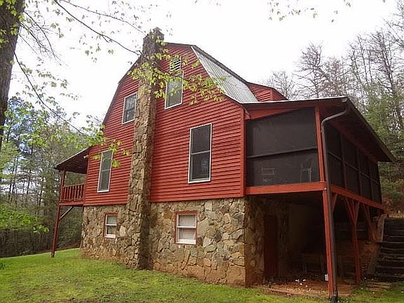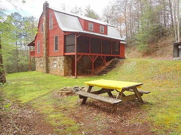 ONE WORD---WOW! Craftsman Style Mountain Cabin set on 3 Gorgeous Acres w/end of Road Privacy, yet not remote. Nice mixture of Open Area & Woods, with Big Firepit to have Smores & make Family Memories The Cabin has Wood Floors/Ceilings and exposed Wood Beams both levels. Two Wood Burning Stoves on Main Level for those cool evenings. Main Level w/Large Living Rm, Formal Dining Rm., Eat in Spacious Kitchen & Utility Rm. Upper Level has Oversized Master Suite w/adjoining Sitting Area & Private Bath. Guest Bedroom, Bonus Sleeping Rm. and Guest Full Bath. Library Area has Built in Bookshelves. Lower Level is Unfinished w/1 Car Garage, Work Bench, plumbed for 4th bath. Relax & enjoy the Wildlife & your Favorite Beverage from the Front Covered Porch or Back Screen Porch. Pride of Ownership abounds with current owner providing the following updates: Drilled Well 1997, Metal Roof & Gutters 2009, 2011 Lennox Heat Pump w/2 Lennox AC Air Compressors w/Warranty until 2021, Whole House Dehumidifier 2013, New Insulation Main Floor 2015, New Chimney Caps 2016. Play in your Mountain Stream too! Additional Private Level Spot to Park an RV or build a small cottage.
