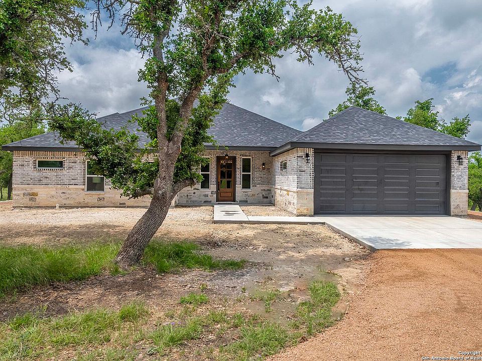 Posh new construction on 4.3 acres in Reservation Ranch, only 30 minutes from Fredericksburg & Kerrville. This 4-bedroom home has unique brick masonry exterior on all 4 sides, attached 2 car garage, and lovely oak trees surrounding the home. The open floorplan will please everyone with space to entertain. Kitchen offers island bar with sink & dishwasher, SS appliances, extensive cabinetry and pantry storage. Primary suite offers dual vanities AND 2 walk-in closets! 3 additional bedrooms share a bathroom. Soaring 11 ft ceilings in the living room, 9 ft ceilings in rest of house, entryway with solid wood front door and 2 coat closets. Garage is plumbed for water softener. Every room is light & airy! Crushed granite driveway and surrounding 3 sides. Reservation Ranch is a gated community, highly desired Harper ISD, 10 minutes West of Harper, providing a central water system and reasonable restrictions. Staging by @thestagingcohq (SA); Photos by Dale H Leach Photography (Kvlle)