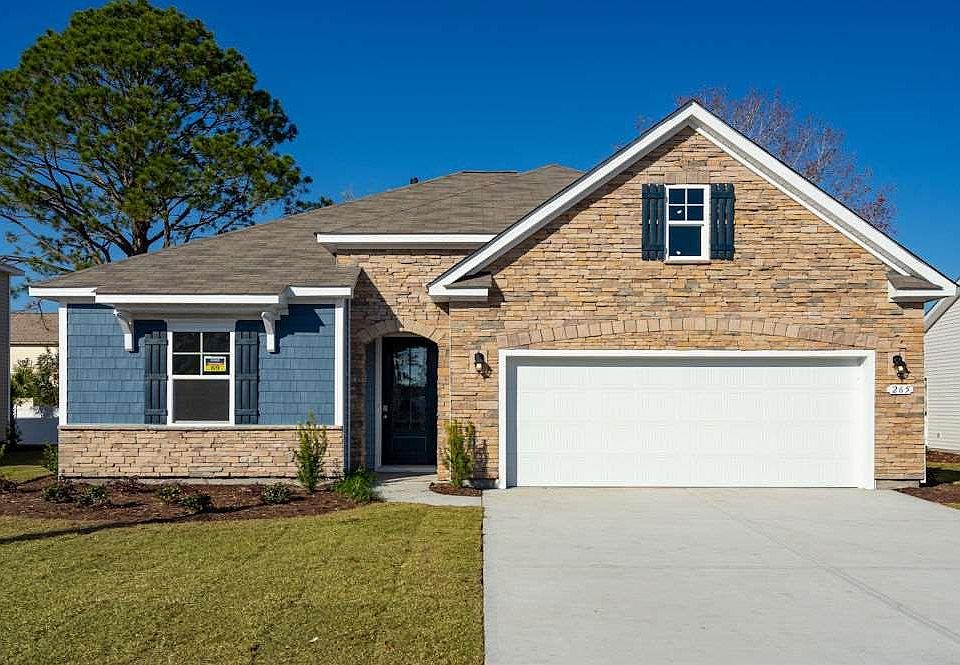 Ready now! This home has a great open floor plan and beautiful exterior with stacked stone, shake accents, and an 8ft. entry door with glass. Spacious kitchen with granite countertops, pendant lights over the island, stainless steel appliances including a gas range, and a large walk- in pantry. The oversized island with breakfast bar is great for cooking and entertaining. The kitchen overlooks the dining room and family room with plenty of room for everyone to gather around. Private owner's suite is in the back of the home. Large owner's bath with dual vanities separated by a linen closet and a 5' walk-in shower. Sliding glass doors off the dining area lead to the 12 x 8 covered porch. Located approximately 1 mile to the beach and this community is golf cart friendly! Approximately 4 miles to Market Commons and less than 6 miles to Murrells Inlet Marsh Walk. (Home and community information, including pricing, included features, terms, availability and amenities, are subject to change prior to sale at any time without notice or obligation. Square footages are approximate. Pictures, photographs, colors, features, and sizes are for illustration purposes only and will vary from the homes as built. Equal housing opportunity builder.)