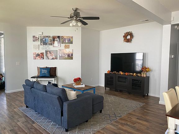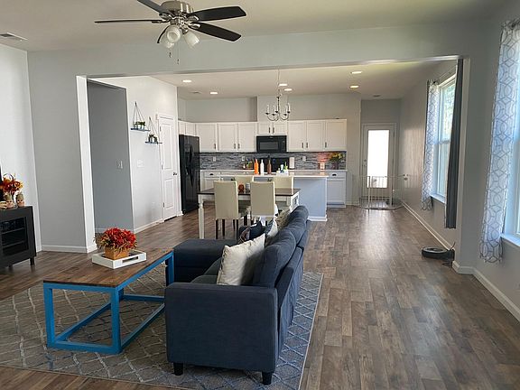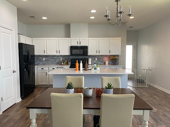 3 bedroom. 2 bath open floor plan home. Large center island in kItchen. Master bedroom with ensuite master bathroom and large walk in closet. Appliances include Electric stove, fridge, dishwasher, and microwave: Fenced in back yard with side gate. 2 car garage. Community amenities include a short walk to a large pool, ponds, pavilion, dog park, two kids parks and disc golf. Military clause available! 6 month or one year term available. Trash paid by owner, all other services paid by renter.