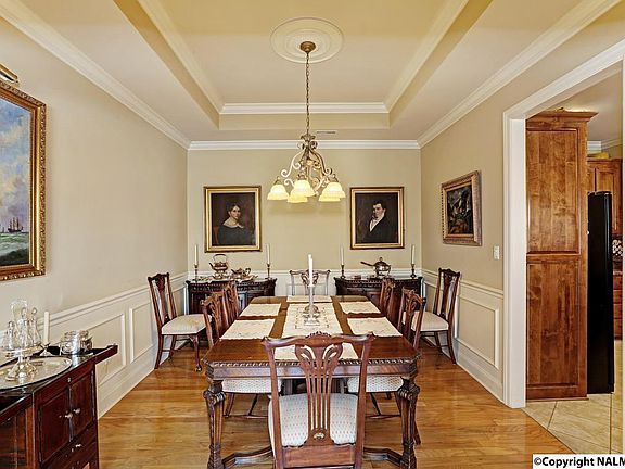 - DINING ROOM DESC: Wood Floor, Smooth Ceiling, Crown Mold, 9? Ceiling, Trey