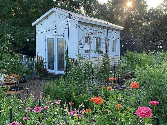 2-story Farmhouse on 9 acres & convenient to Mooresville. The primary bedroom is on the main floor. Large great room with wood burning fireplace opens to the kitchen and dining area. This country-style kitchen includes a Kohler apron sink and brass kitchen cabinet hardware from House of Antique Hardware. Upper Level: 2 bedrooms, large bathroom, small den area with closet and a hobby/sewing room. The garage is in the basement and also 2 large storage areas, one with a wood burning heater & the other with utility sink. This 9 acres includes; a fenced established garden area, custom-built greenhouse studio, 2 chicken houses and a custom built duck house. Much of the back is already fenced with gates. There is a wooded trail to walk or take your atv on that leads to the creek. This trail has wildlife including deer, owls and more. The huge covered side porch will become one of your favorite spots to relax. This property is a hidden gem. (Approx 13 miles to beautiful Lake Norman!)