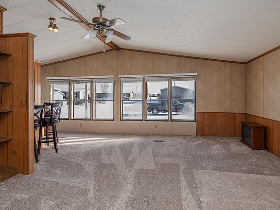 Seller will pay $2,000 towards the buyers closing costs. You must see all the interior and exterior remodeling and updates in this beautiful 3 bedroom 2 bath property. New in 2018 exterior doors, vinyl siding, skirting, insulation, heat tape, water heater and furnace. New in 2019-2020 Central air. New in 2021 steel roof and flooring. New in 2021-2022 gutters and downspouts. New in 2023 both bathrooms. The floor plan is very open with lots of windows. 1,680 sq ft. (28 x 60). Notice all the cabinets in the kitchen and bar area. The living room and dining areas are very spacious. You will love the cathedral ceilings in the primary bedroom along with a big closet and new primary bathroom. The lot rent is $380 and the water is included in the lot rent. Buyers need to get approval from the Park prior to moving in.