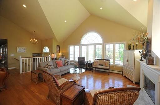Contemporary style large Raised Ranch with beautiful open floor plan with a fireplace 3 bedrooms 2 full baths , beautiful finished basement with new kitchen and another fireplace ,beautiful yard with deck and above ground pool ,pella windows Two stall garage .