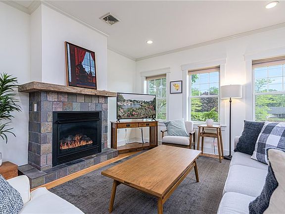 With a prime location walking distance to Pawtuxet Village, this beautifully appointed townhouse is move-in ready. The open floor concept on the first floor provides for a spacious living room with stone-fronted gas fireplace, dining area and eat-kitchen. Sparkling granite counters, stainless appliances and ample cabinet space make the kitchen a cook's dream. And the kitchen center island doubles as an additional dining space, with even more storage for easy entertaining. A door off the back of the kitchen leads to a private back paver patio and detached storage shed, perfect for storing bikes, grill and patio furniture. A half bath and large walk-in closet complete the first floor. The 2nd floor boasts two bedrooms each with their own attached full bathroom. Conveniently, laundry is located in the 2nd floor hallway next to a large linen closet. Water and sewer included in fee. Gas forced hot air heat and central air. Tankless gas hot water system. 2 assigned parking spots in front of the unit convey with the unit. Recessed lighting, crown molding, and beautiful flooring all add up to make this a beautiful and welcoming place to call home.
