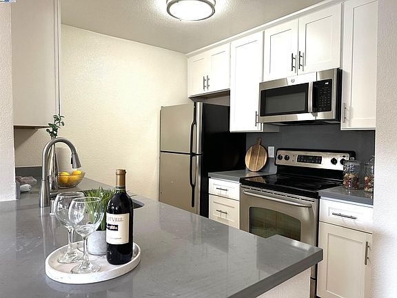 Resort like living at the heart of San Ramon in the Reflections gated community. This spacious 1 Bedroom, 1 Bathroom ground floor condo offers newly updated kitchen cabinet, quartz countertop, new microwave, new range oven. Full bathroom with large vanity/stone countertop, and a full shower over tub. Open kitchen overlooking living room offers raised pull-up breakfast bar, tile flooring, stainless steel appliances. The Reflections Community offers a range of amenities , community pool, hot tub, fitness room , BBQ area. Walking distance to the Market Place, City Center, eateries, top rated schools, parks, churches & short drive to freeways & renown golf courses. Don't miss this incredible opportunity to own a piece of San Ramon's resort-style living.
