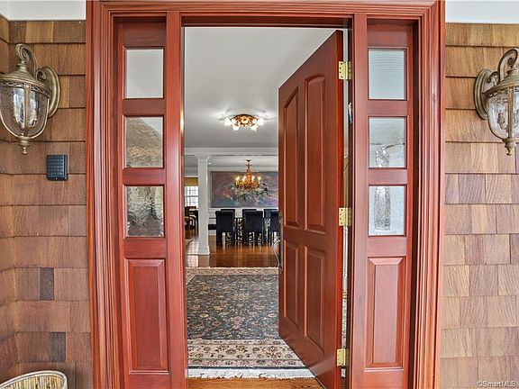 Lovely Dutch Colonial on a quiet pvt lane, accessed through a gated entry w/newly paved driveway. This home features a light-filled, open flr plan w/eat-in kit, adjoining glass walled FR w/cath ceil, LR w/cath ceil & stone FP, a lrg dining area w/FP and a den/bdrm w/full bath. The second flr has a grand MBR suite w/tray ceiling & French door that opens to a private balcony. The oversized marble Mstr bath has heated tub, XL shwr, dbl sink vanity & radiant heated floor. Two additional bdrms are serviced by a hall bath. The LL has extensive storage & a bonus rm w/adj pwdr rm. A well-maintained property & structure incl foam insulation w/a combination of gas & geothermal heating/cooling. This house was awarded the Gold Star rating from the State for its fuel efficiency. Features and Enhancements Total home renovation in 2010. Awarded a Gold Star rating by the State of Connecticut for its energy efficiency. Features: -Automatic entrance gate including remote devices, controlled by phone and cell. -Driveway paved in 2019. -Oversized two-car garage. -Custom Mahogany front door and garage doors. -Finished oak hardwood floors throughout. -Laundry chute from the master bedroom to the laundry area below that can be converted into an electric dumb waiter. -Energy efficient LED lighting throughout. -Recently upgraded state-of-the-art alarm system monitoring which can be controlled by a smart phone. -Central monitor smart alarm system includes smoke, heat, cold, CO2, propane, and water sensors throughout house with auto shut off if water leak is detected. -13-zone Sprinkler System Enhancements: -There is an envelope of foam insulation covering all sides and roof of the house. -Energy efficient Marvin windows and doors. Many of the windows have additionally been covered with a 3M clear coating. -The house is protected by a series of lightning rods and a whole house surge protector, if needed -Geothermal heating and cooling for the 2nd floor and new, highly efficient conventional gas and electric units for the lower floors provides comfort and low energy cost in any weather. -Bathtub in master bath has separate circulator heater to keep bath water at desired temperature. -Master bathroom has heated floor with thermostatic control -Filtered system in place to bring fresh air into the interior spaces -A 20K propane generator provides backup electricity if needed. -A 1000 foot deep well provides unlimited water in conjunction with a secondary backup well, all with a series of filters for chemical-free purity. -Two Rennai propane instant hot water heaters provide unlimited hot water along with a separate hot water loop for the master bathroom. -Two masonry fireplaces