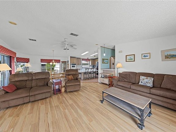 Looking for a second home or a full time residence this is one home you need to see! This furnished 2 bedroom 2 bath home has so much to offer. The open layout of the living, dining and kitchen area creates a great atmosphere for entertaining yet still provides that great homey feeling when you want to kick back and relax. Enjoy the evenings on your screened lanai with a lovely water view. Like the cooler nights? Enjoy a restful night sleep on the hand built bed. The garage door was recently installed allowing you to keep the car inside for the sun. There is even a small workshop - what more can you ask for. Riverwood is a 55 plus manufactured home community with low fees. The community boat ramp is so convenient for boat owners. Have pets????? Another plus for Riverwood allows you to have up to 3 pets. Do not miss your opportunity to see this one! Please note photo of outside was home was taken before garage door was being installed. New photo will be added after siding is completed.
