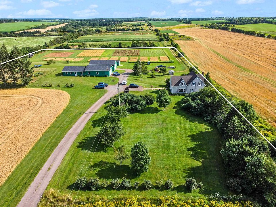 Welcome to 265 Rte 258, New Glasgow, a rare opportunity to own this unique property featuring a 4 bedroom home, 9 acres of farmland, a commercial outbuilding/shop and a pole barn. Perfectly suited for an entrepreneur, a hobby farmer, or anyone seeking a flexible live-work setup in one of the most scenic areas of PEI. The property features 14 acres in total, with approximately 9 acres of arable land, ideal for crops or livestock. The spacious 2,400 sq ft home offers modern updates throughout. On the main level you will find the open concept kitchen and dining area with ample cupboards, kitchen island and built in office space. The main level also features your living room, full bathroom, and a bonus room ideal for a home office, craft room or kid's playroom. The second level has 4 bedrooms in total, with another extra room, as well as a 3/4 bathroom. The basement is fully finished on one side, with a rec room/entertainment area and the other side consists of the laundry area, utility room and large storage space. The private oasis in the backyard features a hot tub, pergola with a lounge and bbq area, as well as a fire pit. The home is equipped with geothermal heating and air conditioning throughout, along with a Generac backup generator for the house and outbuildings. A 30x80 multi-use outbuilding adds incredible value, with the front half functioning as a garage/shop with 10 ft ceilings and the back section serving as a dedicated office space complete with a separate entrance, reception area, two offices, a boardroom, and 1.5 bathrooms. Located beside the main outbuilding you will find a 32x48 pole barn with a large overhead garage door, and a 13x40 attached greenhouse. A third 12x16 outbuilding offers additional storage space. This unique property sits only 20 minutes from Charlottetown and minutes away from some of the best beaches on the Island.