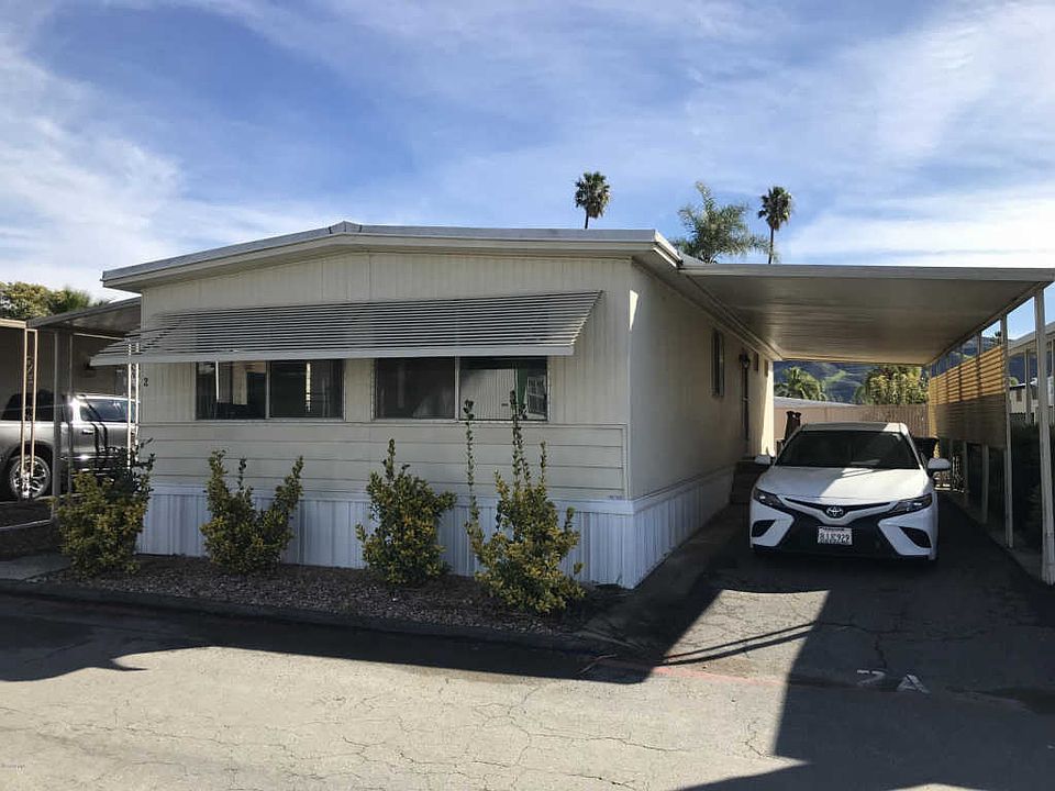 West Side of Santa Paula! This affordable mobile home is in a quiet Family Park and is located directly across from the club house. Master Bedroom is a nice size and includes an ensuite. Generous living room which boasts a mountain view! The kitchen was upgraded by previous owner, includes granite counters, and overlooks dining area. Roof approximately 5 years old. Newer air-conditioning unit. Small yard also includes a shed. Easy access to Hwy. 126!