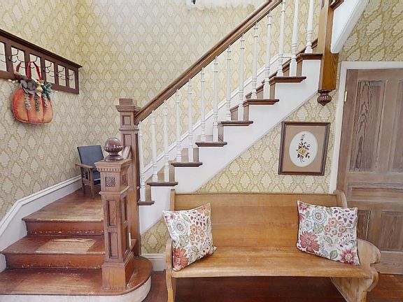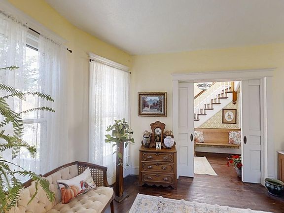 This charming 3 bedrooms, 3 bath home is easy to fall in love with! Property contains 4 lots (together.596 acre), detached garage with living space, a 4th non-conforming basement bedroom, lawn sprinklers & so much more! This corner home has a grant feel with it's large covered porch, white picket fence & exterior details! You are welcomed into the home by a grant staircase with all the charming old wood details. Upstairs you will find 3 bedrooms and a 3/4 bathroom. The master bedroom features a walk in closet! On the main floor you will find a sitting room, formal dining room which features large windows, full bathroom, main floor laundry, living room and kitchen! In the basement is a non-conforming bedroom featuring built in cabinets and an attached bathroom! Hardwood floors are present throughout the home! This home's garage has tons of space for at least 3 cars and a finished attached room with fireplace. Roof in 2014! New Furnace/AC in December 2022! All measurements approximate
