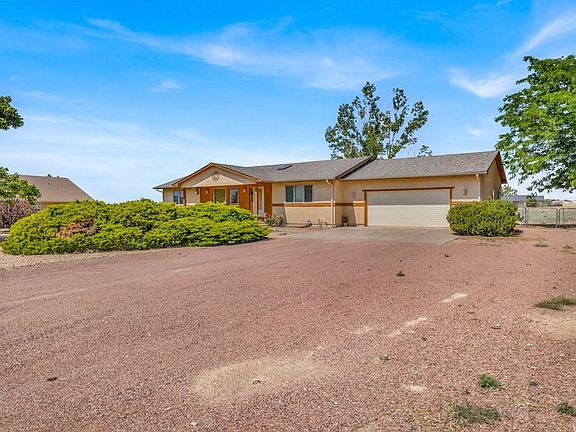 Make this sprawling Pueblo West rancher your new home with main level living and a large unfinished basement. This rancher says your home the moment you walk into the large open concept living, dining, and kitchen area with large vaulted ceilings and endless counter space in the large kitchen. Perfect for entertaining this home has a large living area with lovely wood accents and six-panel wood doors throughout. Split bedroom design with a spacious master that includes a large master bathroom including whirlpool, double sinks, and walk in shower. The master is also complete with a large walk in closet. Enjoy sunsets from the redwood deck just off of the dining room. Home has meticulously maintained with a brand new roof, recent inspection by HVAC of the furnace and central air unit. There is a large laundry room with a utility sink just off of the oversized 2 car attached garage. Workbenches stay. The full unfinished basement is sunny with large windows and ready for you to expand with plumbing in place for future bathroom to be added. This home is situated on a little over an acre and is zoned for large animals. Close to I-25!