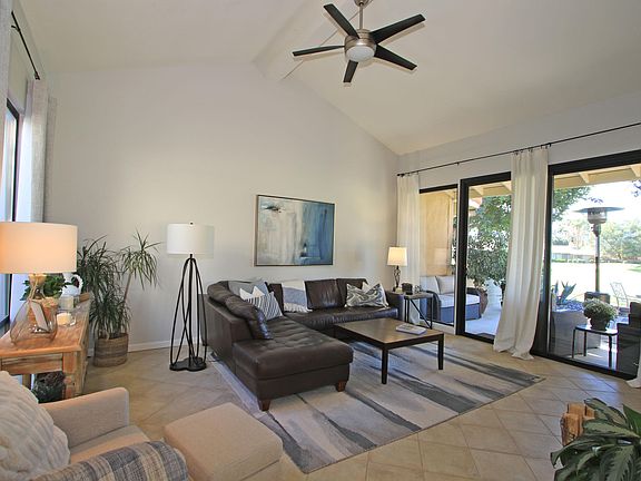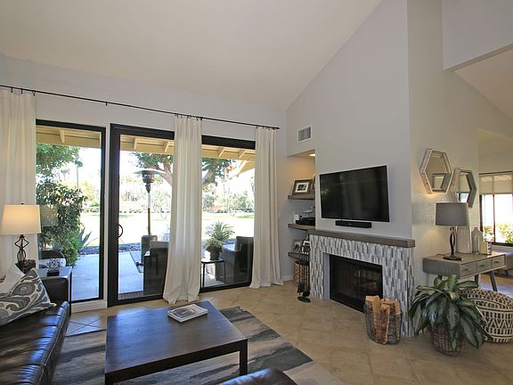 This three bedroom, two bath Monterey Country Club condominium enjoys panoramic southern mountain and golf course views, has been updated throughout and is available turnkey furnished. The home's kitchen and baths feature custom cabinetry and quartz countertops and the kitchen includes stainless steel appliances and a gas range. The owners have installed energy efficient windows and patio doors and the rear patio has been extended and features attractive desert landscaping. This beautiful home is truly move-in ready and is priced to sell! Monterey Country Club features 27 holes of championship golf, pickleball, tennis, bocce ball, recently renovated fitness center and a full service clubhouse with a busy social calendar. New membership options make country club living more affordable than ever! Come discover what our residents already know......Monterey Country Club is the best kept secret in the desert!