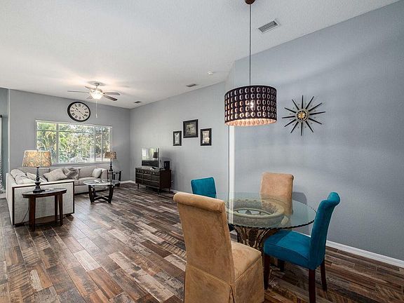 Buyers will not be disappointed with the stunning home with a water view Popular split floor plan with 3 bedroom 2 bath, spacious screen porch, extended garage. Lots of windows that allows natural light & water views. 8 ft sliding door. Kitchen offers breakfast nook, breakfast bar, pantry, new dishwasher, new refrigerator. New fans and lights. A/C 1 yr old. New hot water heater. Home recently painted. Living room, dining room and Master bedroom with newer with wood plank look tile. Master suite with his & hers walk in closets, double sinks, walk in shower and garden tub. Spare bedrooms with new plush carpet. Inside laundry room. Hurricane shutters. Sprinkler with reclaimed water.A+ schools. Centrally located to shopping, entertainment & dining.