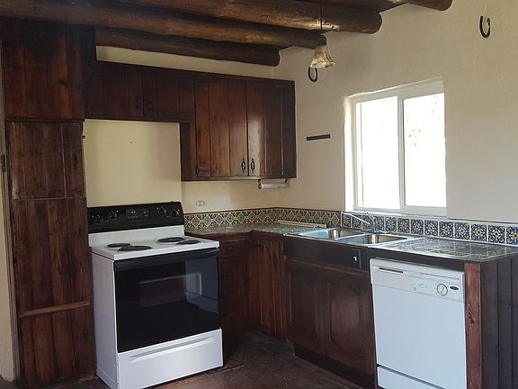 Nestled among the trees on Sedillo Hill sits this fabulous casita! The main living area features beautifully aged viga ceilings with rich robust flagstone flooring, horse shoe curtain rod hooks, and a wood burning stove creating a rustic country ambiance. Cook's kitchen has plenty of cabinetry, decorative tiled countertops, and stainless steel sink. Also featured are three bedrooms, an office/studio area w/large walk in closet, electric baseboard heating, fresh paint, new septic, new windows, and more... Great location with quick freeway access and a short drive to the city. Don't let this one pass you by!