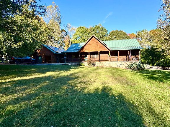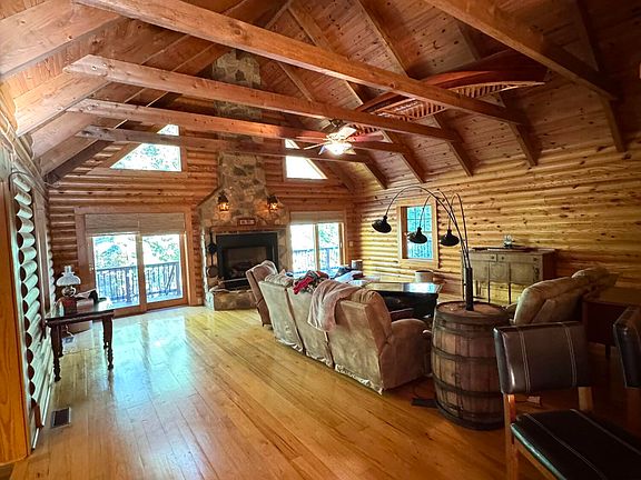 Amazing custom-built log home located close to Smith Mountain Lake! With roughly 2,500 square feet of single-story living space, a large heated/cooled garage, and 1,500 square feet of outside deck space--perfect for entertaining or unwinding in nature, this immaculately preserved log home is situated on 7.75 private acres in a quiet neighborhood. Inside, take advantage of a large great room and a completely renovated kitchen including porcelain tile floors, granite countertops, and a tumbled marble backsplash. There are three spacious bedrooms and two and a half bathrooms with a soaking tub and tiled walk-in showers. Custom imports from Scandinavia provide unique beauty and fine craftsmanship to all interior solid wood doors. The unfinished, heated/cooled basement is suitable for a workshop