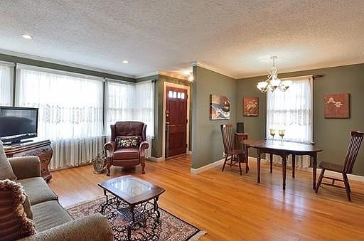 Why rent & BETTER than a Condo! Pride of ownership is evident this the absolutely charming Ranch on large corner lot. Hardwood floors and crown molding through out with tile in Kitchen and bath. "L" shape living room/dining room. Updated eat in kitchen with cherry cabinets,& recessed lighting. Master bedroom accommodates king size furniture. Spacious screen porch with ceiling fan/light. NEWER: Vinyl siding, roof, gutters, & chimney rebuilt from roof up. Home is wired for generator. Spacious shed. Average gas $184/mo and ave elect $104/mo. The double door closet in 2nd bedroom can be removed.