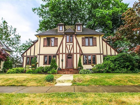 Charming Colonial with old world English Tudor appeal set on a peaceful street in the heart of Irondequoit's HOT Laurelton neighborhood, just on the edge of the North Winton Village! Gleaming hardwood floors greet you at the front door and carry throughout the first floor. The large living room is a perfect setting with a fireplace and bonus sitting area with huge original French leaded glass windows. The spacious kitchen offers tons of storage, along with stainless appliances. Just off the kitchen a formal dining room awaits all your entertaining needs. Off the dining room is the entrance to the backyard paradise. Outside on this double lot you will find a stunning backyard with a fully fenced yard and is shaded by mature trees, landscaping and gardens. Overlook all of this beauty from the paver patio and covered porch off the dining room. Upstairs you will find 3 spacious bedrooms and 2 full baths, plus a 2nd floor laundry! There is also a bonus 2nd kitchen on the 1st floor! There is a huge driveway, with plenty of room for parking, that leads to a massive 2 car detached garage that also has a 2nd floor storage loft. Also already equipped with Greenlight internet. Don't wait!